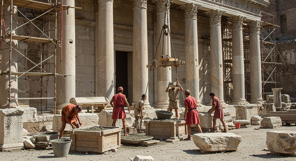 Wenn wir einen Blick in die Vergangenheit werfen, erkennen wir, dass Zivilisationen vor zweitausend Jahren etwas wussten, das wir heute vergessen haben. Die Römer verwendeten Kalk und Puzzolane (Vulkanasche) für ihre Bauten und erschufen damit Beton und Mörtel, die viele jahrhundertelang Bestand hatten. Sie versuchten nicht, Feuchtigkeit einzuschließen, sondern bauten so, dass die Strukturen „atmeten“ und Wasser nicht als Feind, sondern als Teil des natürlichen Prozesses verstanden wurde.