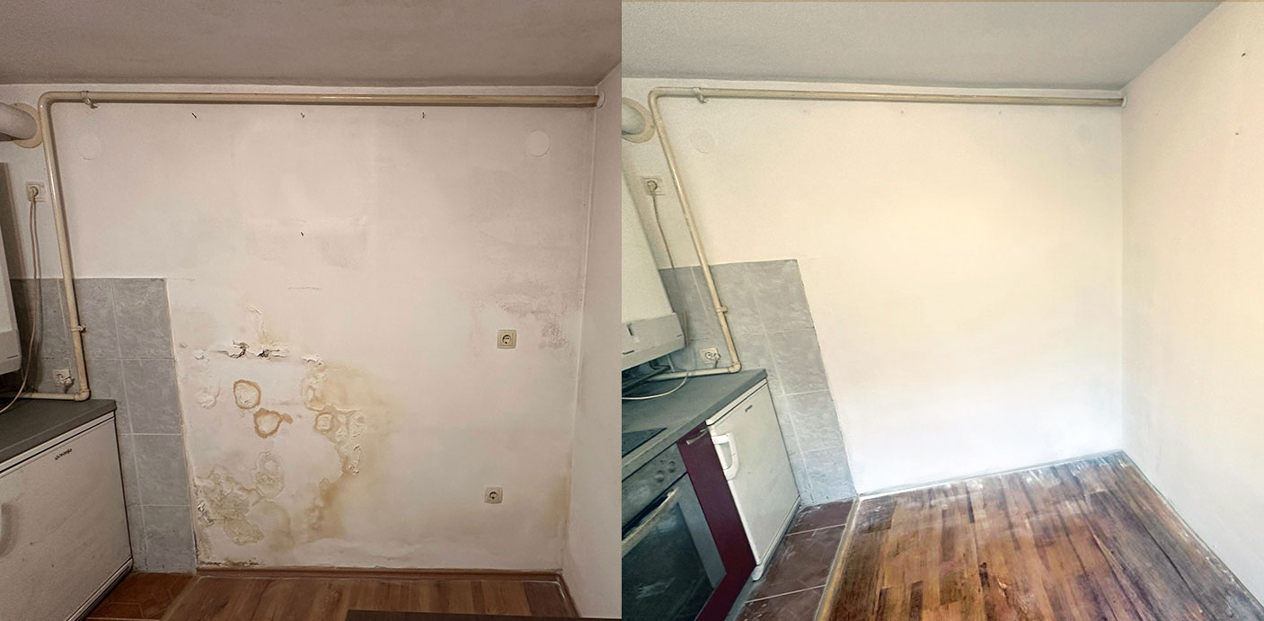 Nach der Sanierung sind die Wände komplett entfeuchtet und wiederhergestellt, und die Silikatfarbe sorgt zudem für Feuchtigkeitsbeständigkeit. Neben der visuellen Transformation ist der Raum jetzt ohne unangenehme Gerüche und Schimmel, was zu einer gesünderen Lebensumgebung beiträgt.