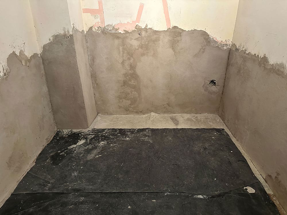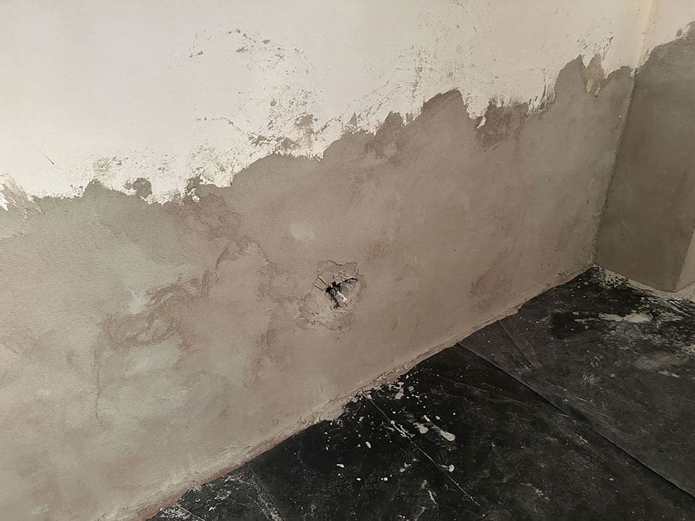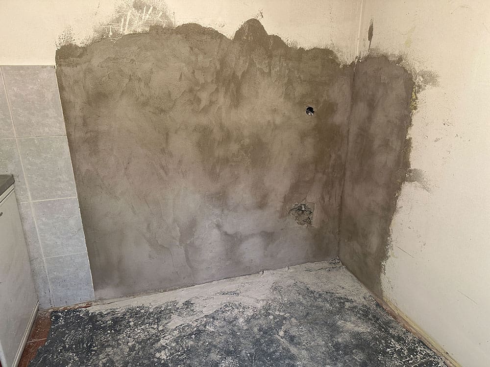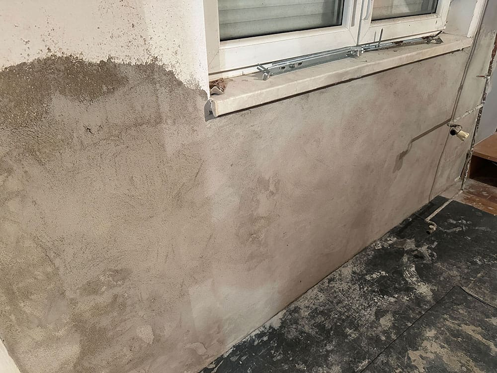 Für eine Mauertrockenlegung, also um das Problem der feuchten Wände zu lösen und eine weitere Verschlechterung der Bausubstanz zu verhindern, wurde mit dem RENODRY-Entfeuchtungsputz gearbeitet: